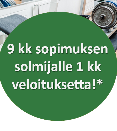 Solmiessasi 9 kk sopimuksen* saat ensimmäisen kuukauden VELOITUKSETTA! Hinnat: